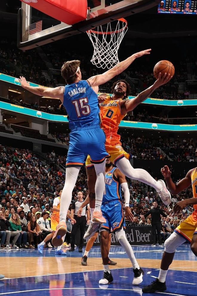 中場休息回來,雷霆本場第2次單節轟下30+得分,且限制黃蜂首次單節得分不足20分。黃蜂率先追到57-57,亞歷山大連續得分引領一波16-1攻勢拉開15分優勢,黃蜂一波7-0攻勢追分。亞歷山大攻傳結合繼續給力表現,他第三節7中6高效得到15分,率領雷霆一度87-67領先20分。黃蜂追回3分,雷霆單節32-18凈勝14分,三節結束雷霆擴大87-70領先黃蜂。前三節比賽,亞歷山大19中13高效33分7助攻與霍姆格倫21+7,塞克斯頓3記三分13分引領黃蜂4人得分上雙。