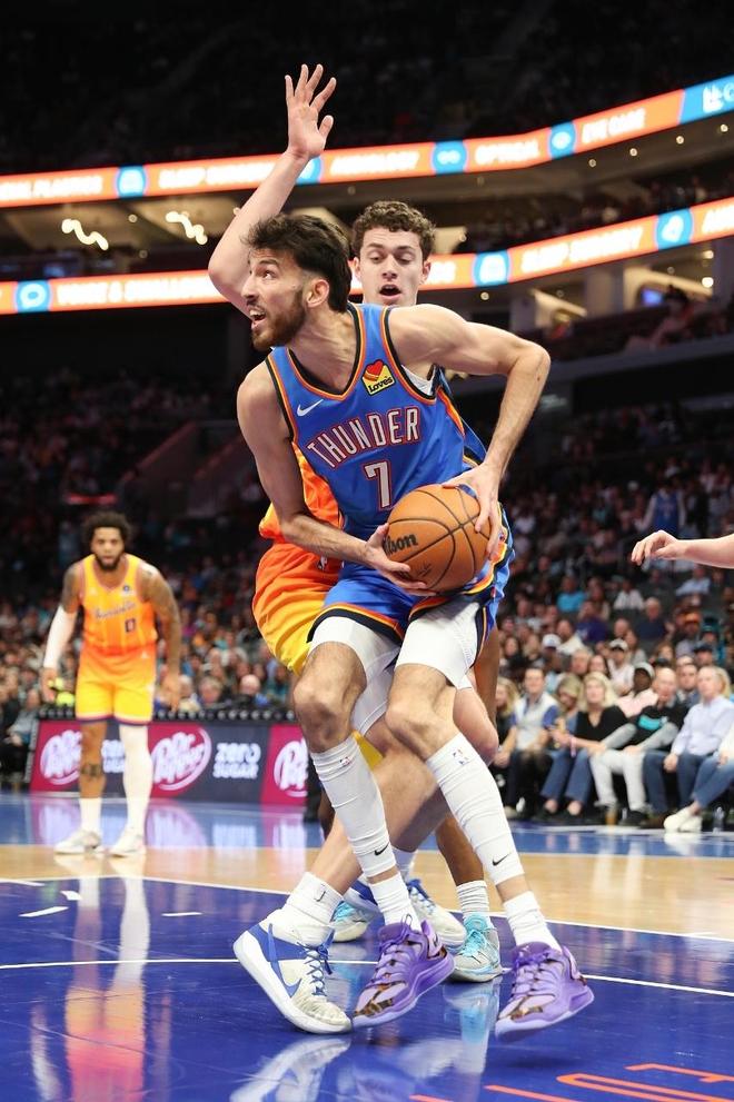 雷霆過去4場連贏國王、灰熊、勇士與湖人收獲4連勝,黃蜂上一場客場134-147加時輸給雄鹿。本場雷霆缺少杰倫、維金斯與托皮奇等,黃蜂缺少三球、米勒、格林與格威等。首節雙方進攻效率均是不俗,但前2分鐘雙方均是只得到2分,雙方隨后持續交替領先至雷霆11-10,黃蜂連得5分取得領先。亞歷山大三分開火引領一波13-4攻勢反超5分,黃蜂連得5分追到24-24,雙方繼續緊咬比分纏斗,首節比賽結束雙方維持30-30。